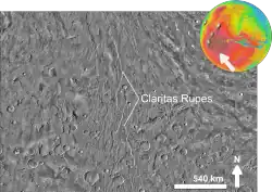 ![]() Claritas Rupes based on THEMIS day-time image | |