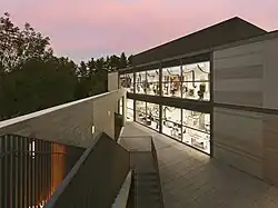 Tadao Ando designed two additions: the Lunder Center at Stone Hill and the 42,600-square-foot (3,960 m2) Clark Center, which opened in 2008 and 2014, respectively.[7][8] Envisioned as a sanctuary in the woods waiting to be discovered, the Lunder Center features two galleries and a seasonal terrace café. It is also home to the Williamstown Art Conservation Center, the largest regional conservation center in the country.
