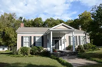 The Clarke–Harrell–Burson House is a historic house at 603 Parkview in Van Buren, Arkansas. It is a single-story wood-frame structure with Greek Revival styling, built about 1841, and is believed to have been the first non-log house built in the area known as Logtown that is now part of the city of Van Buren. The house is locally notable for several prominent residents: George Washington Clarke was the publisher of Arkansas's first newspaper west of Little Rock, the Intelligencer, which began publication in 1842 and was taken over by Clarke in 1844. The house's next owner, the Rev. Jonathan Harrell, was the first Methodist minister in the region, and a founding member of the Arkansas Methodist conference. Later in the 19th century it was owned by Dr. Edward Burson, a veteran of the American Civil War and a prominent local dentist.[2]