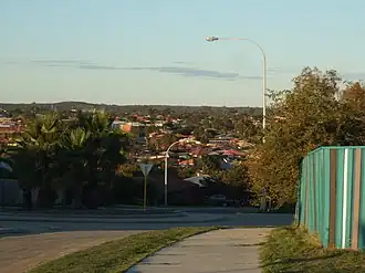 Clarkson railway station on the Yanchep railway line opened in October 2004 in the suburb's southeast.[23] It was the terminus of the then line until 2014, when it was extended north to Butler.[24] It provides bus and rail links to Joondalup and Yanchep, and a direct rail link to Perth and Mandurah. The station sits in the middle of the Mitchell Freeway median strip and is accessed by a bridge.