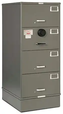 The U.S. General Services Administration sets standards for locks and containers used to store classified material. The most commonly-approved security containers resemble heavy-duty file cabinets with a combination lock in the middle of one drawer. In response to advances in methods to defeat mechanical combination locks, the U.S. government switched to electromechanical locks that limit the rate of attempts to unlock them. After a specific number of failed attempts, they will permanently lock, requiring a locksmith to reset them.