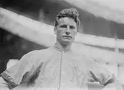 He was discovered by Athletics' first baseman and captain Harry Davis in 1909 while playing for the Greenville Spinners in the Carolina Association when Davis and a group of Athletics players were in Greenville.[1] The following year, Athletics' owner Connie Mack signed him to the Major Leagues from Greenville shortly before the 1910 World Series, which the Athletics won.[1]