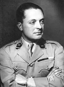 Promoted by the general to the rank of lieutenant colonel, Hettier de Boislambert was given the delicate but critical mandate to create, organize and command the Mission militaire française de liaison administrative (MMLA, literally, "French military mission for administrative liaison"). The purpose was to establish and harmonise relations between allied forces and liberated civilian populations.[1] It was in reality the core element in support of a larger objective on the part of de Gaulle, to block Anglo-American plans for the establishment of Allied Military Government for Occupied Territories - in other words, the administration of postwar France by British and American military personnel.[2] The head of the MMLA, supported by representatives from not yet created government ministries, had to ensure the security of civilian populations, reorganise health provision in each territorial sector as it was liberated, deal with reanimating hospitals and to prepare to address the housing needs of displaced persons. It had to attend to provision of essential supplies directly following liberation, the installation of civil administration and take the first steps to restore a civilian police force and internal security more generally. Ensuring the viability of basic communications channels was another urgent responsibility.[1]
