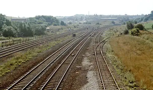 The station was the site of a fatal accident on 19 May 1851 which killed two people and injured sixteen others.[2] The locomotive of a passenger train which left Derby at 21:05 for Leeds suffered a broken pump-rod. The driver stopped near Clay Cross station to remove the broken part and the rear of his train was hit by a goods train and smashed into the last two carriages.[3] At an inquest, the jury reached a verdict of manslaughter against the driver of the goods train, Samuel Stretton, but also condemned the railway company practice of allowing a goods train to follow a passenger train with a gap of only five minutes, the lack of a night signalman at Clay Cross, and the regular practice of allowing trains to stop at stations which were not listed in the timetable.[4]