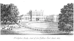 The Clayton-East, later Gilbert-East, later Clayton-East-Clayton baronetcy, of Hall Place in the County of Berkshire, was created in the Baronetage of the United Kingdom on 17 August 1838 for East Clayton-East.[3] Born East Clayton, he was the second son of the 4th Baronet of the Clayton baronets of Marden Park (1732) and his wife Mary East, daughter of Sir William East, 1st Baronet, of Hall Place, a title which had become extinct on the death in 1828 of the 2nd Baronet. East Clayton succeeded to the East estates on the death of his uncle in 1828, and assumed the following year the additional surname of East. In 1838, the baronetcy of Hall Place was revived in his favour. He was succeeded by his eldest son, the 2nd Baronet. In 1839 he assumed for his lifetime only by royal licence the surname of Gilbert-East in lieu of Clayton-East. On his death the title passed to his son, the 3rd Baronet.[1][2] In 1914 Sir Gilbert Augustus Clayton-East, 3rd Baronet succeeded to the baronetcy of Marden Park.[4]