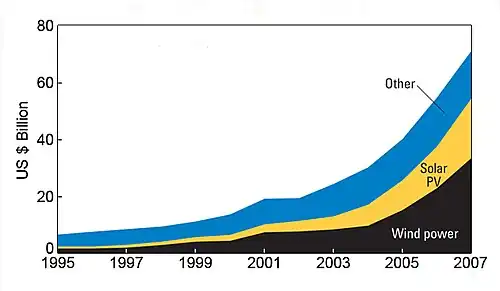 - ^ Makower, J. Pernick, R. Wilder, C. (2008) Clean Energy Trends 2008 Archived 2008-05-12 at the Wayback Machine (Clean Edge Archived 2012-04-14 at the Wayback Machine, USA)