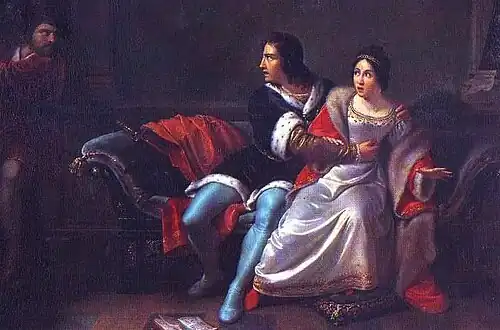 Of his works that are neither portraits nor copies, one of the most familiar is Paolo and Francesca Surprised by Giancotto (1828). During the 1830s and 1840s, some of his works addressed the question of Italian unity, through literary and historical references.