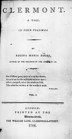 - ^ "This day is published, price 14s, sewed, Clermont: A Tale. In Four Volumes. By Regina Maria Roche". The Times. 4 July 1798. p. 2.