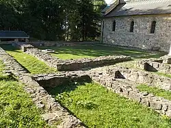 Sometime after 1229, Cletus invited Franciscans to Eger, where he established their monastery.[5] Formerly, some historians – including Márton Szentiványi – erroneously considered this was the first Franciscan convent in Hungary.[9] Cletus also established his clan's monastery on 16 May 1232, dedicated to the Blessed Virgin. The monastery was called Bélháromkút Abbey ("Trium fontium de Beel"), because it was erected between three spring waters near present-day Bélapátfalva, the ancient estate of the Bél kindred (his secular relatives became patrons of the monastery).[5] Upon the intercession of papal legate Giacomo di Pecorari, Cletus invited Cistercians from Pilis Abbey to his newly established monastery.[10] Cletus donated the villages of Apátfalva, Királd, Ostoros, Arnót, Horváti, Mercse, Csokva, Dochond, Pazman, Medsa, Magy, Kisdukány, Csen and Velyn, in addition to three fishponds along the river Tisza to the Bélháromkút Abbey.[5] With the consent of the Eger Chapter, Cletus also granted the fiftieth part of the episcopal tithe to the monastery. His donations were confirmed by Pope Gregory IX in 1239 and Pope Innocent IV in 1253.[11] The establishing charter of the Bélháromkút Abbey was transcribed by Bishop Csanád Telegdi in 1330.[10] Beside the two aforementioned convents, Cletus re-established the St. James hospital in Eger, when he subordinated the institution again to help the poor and sick, overriding the decision of his unnamed predecessors (possibly Katapán and Thomas), who converted the hospital into a church benefice. Pope Gregory IX confirmed this act on 7 March 1240 upon the request of its rector.[12]