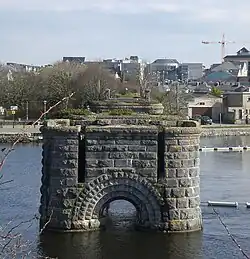 Although the Connemara Railway was demolished in the 1930s, numerous part of the infrastructure of the railway are still well preserved.[18] While the railway line in the city of Galway is no longer recognizable due to construction activity, the tunnel under Prospect Hill and the pillars of the bridge over the Corrib are still there. From the city limits, the route including numerous bridges and culverts has remained largely unobstructed and can be clearly seen in the landscape. Some sections are used as driveways and access roads. Several of the station buildings that were sold to private buyers still exist; the Clifden train station was integrated into a hotel complex.[19] The locomotive shed now houses a museum, the goods shed was used as a theatre stage and cinema.[19]
