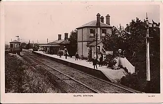 Cliffe (TQ 738 748 51°26′44″N 0°30′07″E / 51.445426°N 0.502011°E) was a railway station between Uralite Halt and High Halstow Halt on the Hundred of Hoo Railway in Kent, England. It was opened on 1 April 1882 and closed to passengers on 4 December 1961 and freight on 20 August 1962. It originally only had one platform, a second platform was built in 1935.[1] The station was demolished soon after closure although one track through the station site remains and still carries freight traffic.