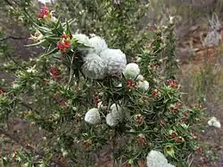 Cliffortia ruscifolia, the climber's friend, is a widespread species of flowering plant in the family Rosaceae, native to the Cape Provinces of South Africa.[1] A 1 to 1.5 m (3 to 5 ft) tall shrub with painfully sharp leaves, it is found growing on rocks and cliffs, and it is a pioneer species of disturbed areas.[2] It is prone to hairy white galls of unknown cause.[2]