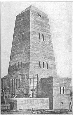 In 1919, Cliffs Shaft engineers determined that the two wooden headframes atop their A and B shafts were deteriorating and would soon be unsafe.[7] When Cliffs Shaft engineers presented company president William G. Mather with proposals to update the headframes, Mather suggested that, because of the prominence of their location, the headframes combine practicality with architectural beauty.[7] The company retained George Washington Maher, a Prairie School architect from Chicago's Condron Company, to design the new headframes.[2] Maher came up with a distinctive obelisk-shaped, Egyptian Revival design for the headframes.
