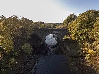 ![]() The aqueduct spanning the Irwell, as viewed from the Clifton Viaduct downstream | |