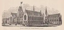 Hansom was called back in the 1870s and asked to design what is now the Percival Library and the open-cloister classrooms. This project was largely completed by 1875 – although the Wilson Tower was not built until 1890 (grade II listed[15]). Other buildings were added as follows: