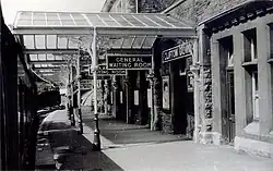 In 1923, grouping resulted in the Midland Railway being absorbed into the London, Midland and Scottish Railway (LMS), and the line continued in a joint arrangement between the Great Western and the LMS.[2] From 1924, many trains to Avonmouth were extended to Severn Beach, a growing seaside resort, and some on to Pilning, then back to Temple Meads via Patchway.[4][3] Between 1903 and 1930 the station employed an average of 22 staff, and in 1926 the station master assumed control over Montpelier as well. The platform canopies were partially removed in the 1930s, and bomb-damage during the Bristol Blitz saw them cut back further. The war also saw the end of services to Fishponds and Mangotsfield, the last operating on 31 March 1941.[1] By 1947, just before the start of the British Rail era, there were 33 services each direction between Avonmouth and Temple Meads, and 18 on Sundays.[3] Some trains made circular trips to and from Temple Meads via Clifton Down and Henbury or Pilning.[4][1]