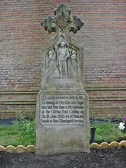 According to some reports in 1869 the miners complained about the safety conditions underground, but Andrew Knowles and Sons refused to concede and a strike began. After some weeks miners were brought in from the Black Country to break the strike. The incoming miners (known as "Bilston scabs") were given the houses formerly occupied by the striking miners.[3] However other researchers have cast doubt in the details. Cutler (2018) cites newspaper reports from 1866 indicating discontent with the management due to the banning of a trades union. The Wigan Observer (quoted by Cutler) reported the ejection of locked out miners in 1866 and their replacement by "200 men from Cornwall and 300 from Staffordshire" brought by the company along with "about twice as many" who came "at their own expense".[4] By the time of the 1885 disaster (below), all the men killed had a local address and were identified by people who also had a local address (where one was given).[5] For many years afterwards the area became known as Little Bilston.[3][6]