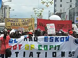 Amid the 2011 UN Climate Change Conference (COP17) held in Durban, demonstrations and protests were organized to raise concerns on climate change issues. A march gathering 12,000 people urged the delegates at COP17 to take urgent climate action.[38] Protesters also made an intrusion into the conference venue at the time when the negotiations were at the deadlock.[39]