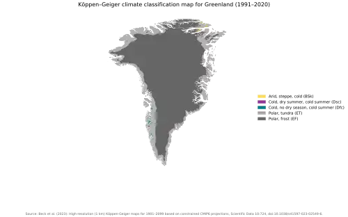 - ^ "The Observed Climate of Greenland, 1958–99 with Climatological Standard Normals, 1961–90" (PDF). Danish Meteorological Institute. Archived from the original (PDF) on 17 February 2024. Retrieved 31 October 2019.