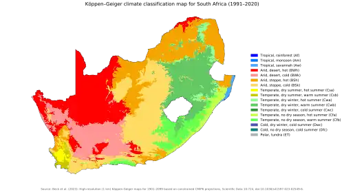 - ^ "South Africa's weather and climate". South Africa gateway. Archived from the original on 1 December 2017. Retrieved 20 November 2017.