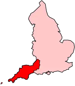 Information in this article relates to the Met Office definition of south-west England, which covers Cornwall, Devon, Somerset, North Somerset, Bath and North East Somerset, South Gloucestershire, the City of Bristol and the Isles of Scilly. This is a smaller area than the UK Government's South West England region, which also covers Gloucestershire, Wiltshire and Dorset. The region is also sometimes loosely described as the West Country.