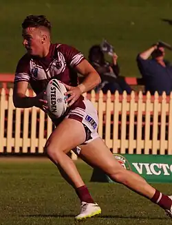 On 20 April, he played for the New South Wales under-20s team against the Queensland under-20s team.[9][10] In round 26 of the 2013 NRL season, he made his NRL debut for Manly-Warringah against the Penrith Panthers, scoring a try on debut.[11][12]