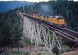 The Clio Trestle is a railroad trestle on the historic Feather River Route of the Union Pacific Railroad. It is located in the Sierra Nevada near Clio in Plumas County, California. The trestle is 172 feet (52 m) high and 1,005 feet (306 m) long.[1]