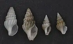 | Four shells of Clionella semicostata (museum specimens at Naturalis Biodiversity Center) | |