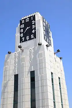 The Clock Tower Building, built between 1929 and 1930 in Art Déco style, is the 4th highest skyscraper in Santa Monica. For around 40 years it held the record for the tallest building in the skyline. The skyscraper was commissioned by the Bay Cities Guaranty and Loan Association to the Californian architects Albert R. Walker (1881–1958) and Percy A. Eisen (1885–1946), whose firm, Walker & Eisen, with a staff of more than 50 draughtsmen, was the most important leading practice in California in the 1920s. Among its many completed projects, the firm had recently designed the extraordinary skyscraper in the Romanesque Revival style known as the Fine Arts Building in Los Angeles (now owned by Sorgente Group of America), one of the most representative buildings in the city.