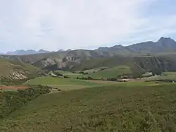 Cloete's Pass, also known as Cloeteskraal Pass and Bergkloof,[1] is a mountain pass in the Western Cape province of South Africa, on the gravel Regional road R327 between Van Wyksdorp and Herbertsdale. It is a pass through the Langeberg mountain range, which separates the southern Cape coast from the Little Karoo. It is named after the Cloete family who owned the farm there. The pass features many flowering plants and ruins of old toll houses and blockhouses built by the British during the Anglo–Boer War.