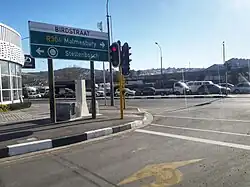 Stellenbosch is also served by two metropolitan routes linking it to nearby towns in the City of Cape Town. The M12 (Polkadraai Road) which begins at the intersection with the R310 just outside Stellenbosch connects the town with Kuilsrivier and the Cape Town International Airport to the west. The M23 (Bottelary Road) which begins at the intersection with the R304 just outside Stellenbosch connects the town with Kuilsrivier, Brackenfell and Bellville to the north-west.