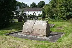 Clones Abbey was founded in the 6th century by St. Tighernach on land granted by an Irish king.[10] The remains that can be seen today include an Augustinian abbey, round tower, 18th century, pictographic tombstones and the stone sarcophagus of St. Tighernach.