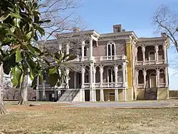 The mansion was built near Nashville's first horseracing track for Dr James and Mary Ann Saunders Hoggatt, who owned sixty enslaved residents in 1860. Mrs. Hoggatt was a granddaughter of Daniel Smith. Her half-brothers from her mother's first marriage were Rachel and Andrew Jackson's nephews Andrew Jackson Donelson and Daniel Smith Donelson, for whom Ft. Donelson was named. The mansion was constructed in the Italianate style. A strong similarity to nearby Two Rivers Mansion that was being erected around the same time suggests that the same unknown contractor and/or architect was used, although no supporting records have been found. The interior of the home had French scenic Zuber wallpaper, and the parlor had a frescoed ceiling. Clover Bottom Plantation was where John McCline was held captive as a slave, in his childhood, and who escaped from the property in 1862 and became a drover for the Union Army. McCline's autobiography "Slavery in the Clover Bottoms" provides a very rare and detailed account of the life of a Davidson County slave prior to and during the early days of the Civil War.[2][3][4] A Tennessee Civil War Trails marker was erected on the property in 2015 detailing the story of McCline. Dr. Hoggatt died in 1863, and the home was occupied at different times during the Civil War by soldiers from both armies.