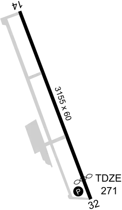 - Runway 14/32: 2,909 x 60 ft (887 x 18 m), surface: asphalt
