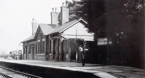 The station was built by the Midland Railway at the summit[2] of the circuitous Barrow Hill to Elmton and Creswell line known as the Clowne Branch.[3]