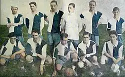 The club affiliated to the Argentine Football Association and started to play at the third division (current Primera C) in 1915 staying there until 1918,[1] it then promoted to second division (then called "División Intermedia") finally reaching the Primera División in 1920.[2] The team finished 5th of 20 in its first season at the top division.[3] One year later Del Plata made its best campaign in Primera, finishing 2nd after champion Huracán with 12 wins and only 2 losses within 18 games played.[4]