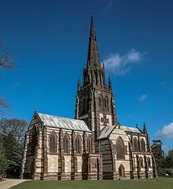 The Church of St Mary the Virgin, a Grade I listed Gothic Revival chapel, was built by the 7th Duke of Newcastle.[23]