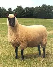 The Clun Forest is a breed of domestic sheep originating from the area surrounding the Clun Forest in Shropshire, England.[2] Similar to many of the British breeds of upland sheep, Clun Forest are hardy, adaptable, good foragers, and are long–lived.[2] With sleek heads and wide pelvic structures, Clun Forest ewes lamb easily.[3] The breed has a short to medium–length wool and dark brown faces. They are a multi–purpose animal, kept for meat, wool, and milk.[3] Like other dark faced sheep, Clun produce quality lamb and mutton. However, in contrast to more common meat breeds such as Suffolks, their wool is free of undesirable black fibres and kemp, and is suitable for handspinning.[2] The breed's alert and stylish appearance, together with its reputation for hardiness and fecundity have made it popular with hobby farmers and large commercial flock owners alike. The Official Clun Sheep Breeders Society Show & Sale for males and females is held annually in early September at Ludlow livestock market by McCartneys.