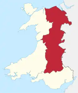 ![]() Map of Wales showing the area covered by the Clwyd-Powys Archaeological Trust | |