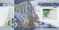 The Clydesdale Bank £5 note, also known informally as a fiver, is a sterling banknote. It is the smallest denomination of banknote issued by Clydesdale Bank. The current polymer note, first issued in 2015, bears an image of engineer William Arrol on the obverse and an image of the Forth Bridge on the reverse. It was the first fully polymer banknote to go into circulation in the United Kingdom.