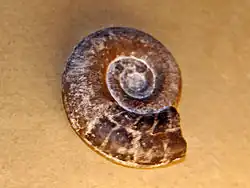 | Fossil shell of Clymenia laevigata, on display at Galerie de paléontologie et d'anatomie comparée, Paris | |