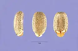 The seeds, which are edible when ripe, are also consumed by humans. Indigenous Peoples harvested bullnettle seeds in the past, and some people still eat them today. Each seed pod contains three seeds, which are smooth, somewhat cylindrical, brownish white, and a half to three quarters of an inch long. When ripe, they are dispersed when the pod burst open, catapulting the seeds away from the plant. Great care and caution is advised in collecting the seeds. Tull suggested wearing long pants, long sleeves, boots, and gloves to pick the seed pods with a pair of tongs, then dropping them into a paper sack and waiting for the pods to ripen and burst in the sack to collect the seeds. They are said to be appetizing and tasty with a nutty flavor.[3][4][8][10]