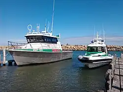 The Maritime Border Command is the de facto coast guard of Australia. The Maritime Border Command is a joint unit of the Australian Defence Force (the Royal Australian Navy Patrol Force and the Royal Australian Air Force Surveillance and Response Group) and the Australian Border Force (Marine Unit and Coastwatch aircraft).[1] It is responsible for border protection in the exclusive economic zone of Australia and its 19,650 kilometres of coastline and issues such as illegal fishing and exploitation of natural resources, maritime terrorism and piracy, biosecurity threats, and marine pollution. The Australian Federal Police supports the Maritime Border Command and particularly the Australian Border Force with criminal investigations, law enforcement and national security matters.[2] From August to December 2021, the Maritime Border Command participated in the Royal Australian Navy and OCIUS Bluebottle trial of unmanned surface vehicle (USV). The purpose of the trial was to assess the use of the Bluebottle as a maritime surveillance system to support maritime security. They tested its ability to detect small boats that pose a threat within its area of operation.[3]