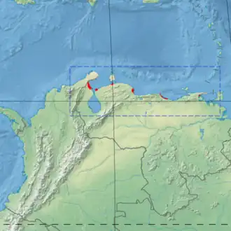 The Coastal Venezuelan mangroves ecoregion (WWF ID: NT1408) covers the salt-water mangrove forests along the Caribbean Sea and Atlantic Ocean coast of Venezuela, from Cocinetas Basin (on the western border with Colombia) to the edge of the Caño Manamo River and the Orinoco Delta in the east. It is one of the largest mangrove ecoregions in South America, with an area of 5,698 km2, and stretching across over 400 km of Venezuelan coastline.[1][2][3]