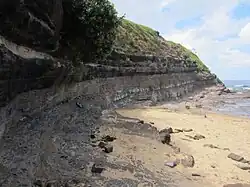 Survivors of the wreck of the Sydney Cove reported seeing coal south of Sydney, after completing their 700 km trek along the coast in May 1797. The explorer George Bass was tasked to confirm the discovery, and, in July 1797, he reported seeing a coal seam "six foot deep in the face of a steep cliff which was traced for eight miles in length"[5][6] (Sites where coal outcrops are visible along the coast south of Sydney include Coalcliff, where coal outcrops in the sea-cliff, and near the ocean pool at Wombarra and at Bell's Point and Brickyard Point, both at Austinmer, where coal outcrops in the headlands.)