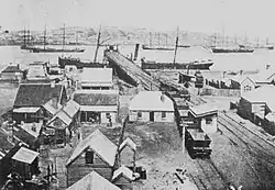 The Drop Ship was still operating in August 1868.[92] It was removed to a dock, in January 1869, as it required an overhaul and repairs,[93] but does not appear to have ever been used again.[41] Its location is shown on a chart of the port from 1869.[94]
