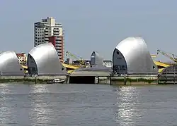 - Great Britain: The Thames Barrier is one of the world's largest flood barriers and serves to protect London from flooding during exceptionally high tides and storm surges.[32][44] The Barrier can be lifted at high tide to prevent sea waters flooding London and can be lowered to release stormwater runoff from the Thames catchment.