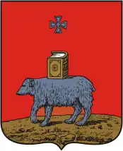 The first coat of arms was adopted on 17 July 1783, by decree of Catherine II. It featured a silver bear on a red field, with a gold Bible on its back and a silver four-pointed star above. The bear symbolizes the savagery of inhabitants prior to Christian enlightenment, which is represented by the Bible.[1][2]