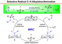 It is a compound in organic chemistry and free radical reactions that can involve homolysis. It is a one-electron catalytic approach for homolytic radical chemistry[1] based on structurally well-defined Co(II) complexes.[2] Due to their distinctive radical mechanisms that involve metal-stabilized radical intermediates, such as α-metalloalkyl radicals, α-metalloaminyl radicals, and α-metalloxyl radicals, the Co(II)–porphyrin-based catalysis system addresses some long-standing challenges in organic transformations.[3][4]