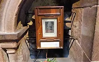 Chester Cathedral possesses a cobweb image of the Virgin Mary, painted on the net of the moth caterpillar Yponomeuta evonymella, probably made by Johan Burgman (d. 1825) from the Tyrol, Austria. It is a copy of a painting by Lucas Cranach I (1472–1553) in Innsbruck Cathedral (Dom zu St. Jakob), Tyrol.[5]